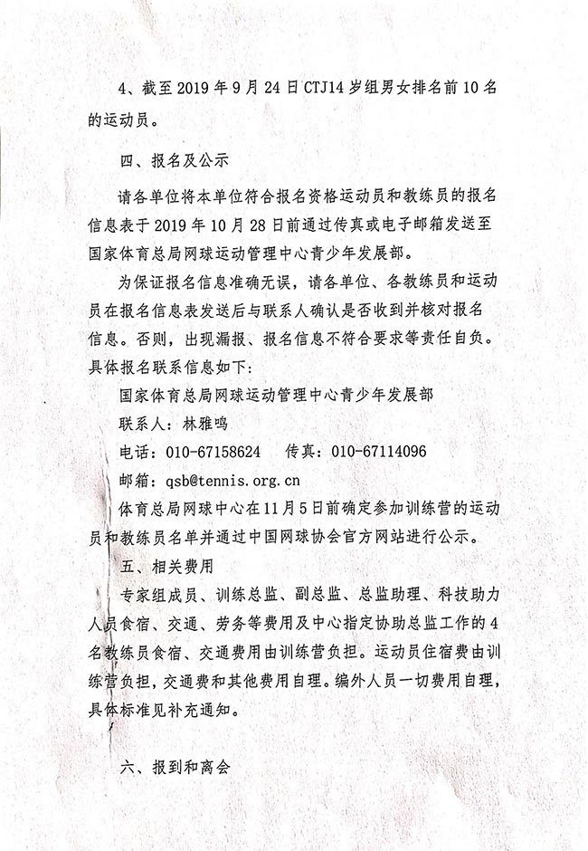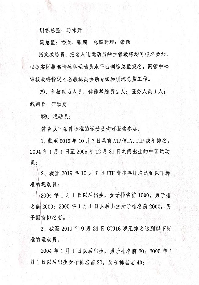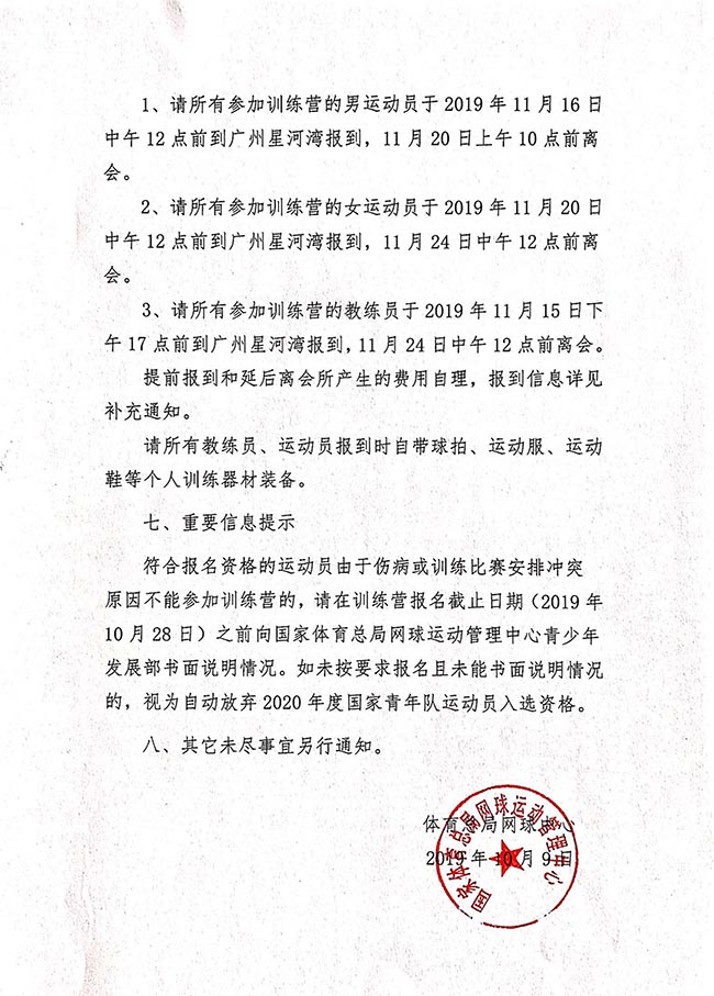 關于舉辦國家少年網球隊運動員選拔訓練營的通知