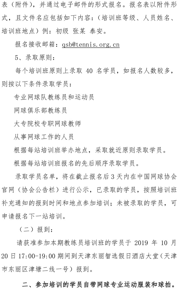 中國(guó)網(wǎng)球協(xié)會(huì)2019年初級(jí)教練員培訓(xùn)班(天津站)補(bǔ)充通知