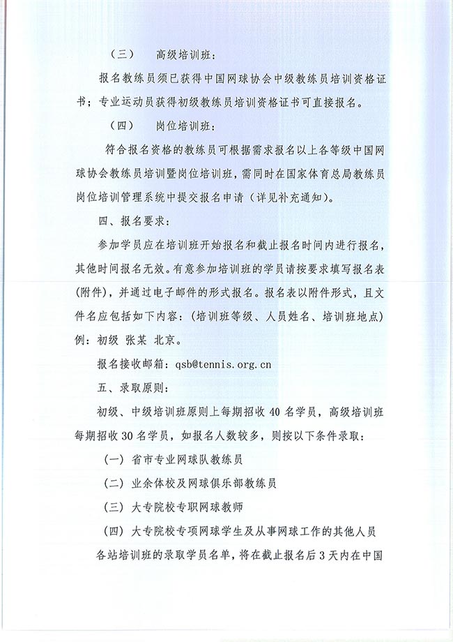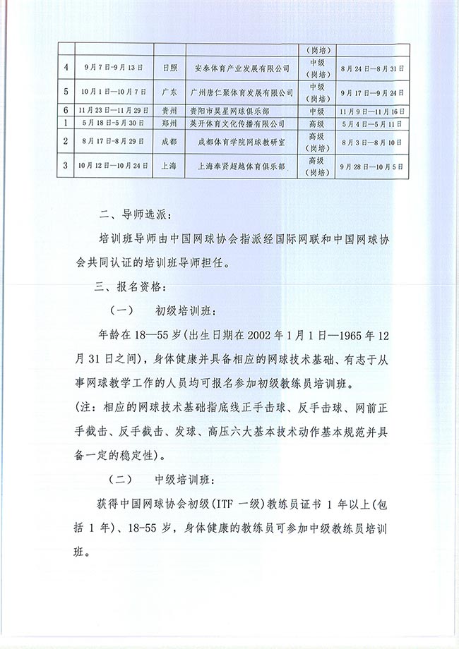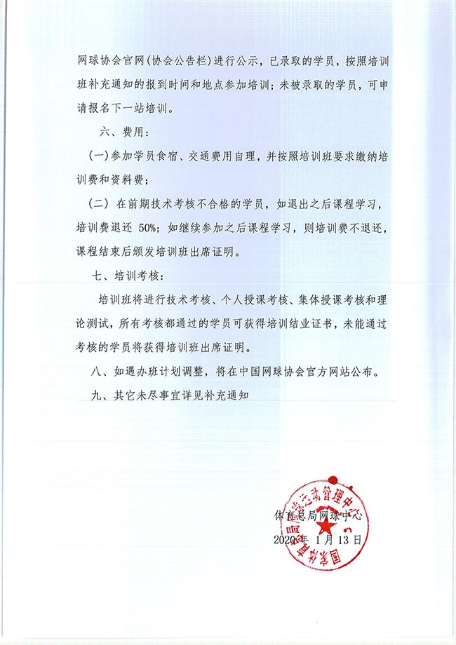 關于舉辦2020年中國網(wǎng)球協(xié)會等級教練員培訓班的通知
