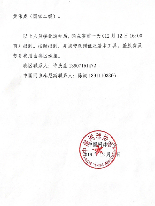 關(guān)于選派2019年中國(guó)業(yè)余網(wǎng)球公開(kāi)賽年終總決賽技術(shù)官員通知