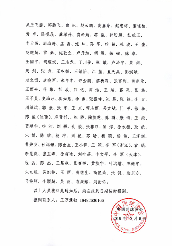 關(guān)于參加首屆中國網(wǎng)球巡回賽裁判員培訓(xùn)班的補(bǔ)充通知