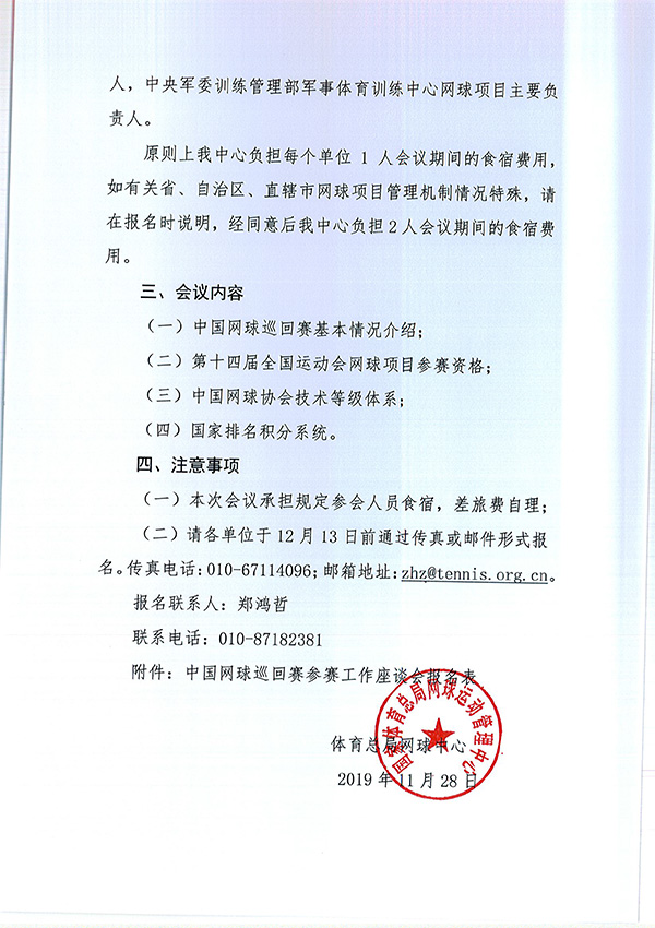 關(guān)于召開中國(guó)網(wǎng)球巡回賽參賽工作座談會(huì)的通知