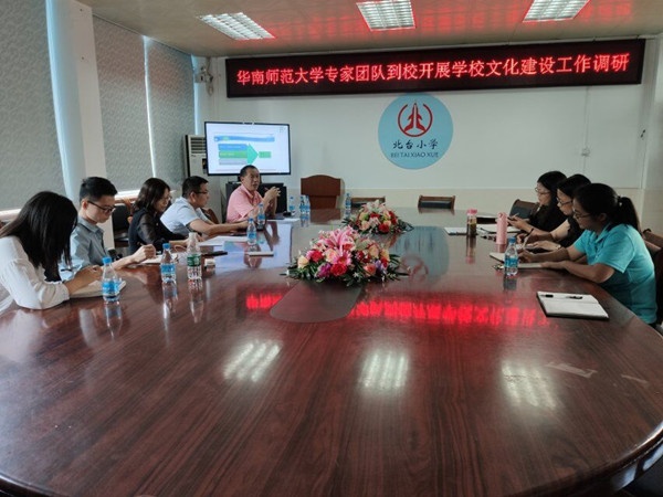 校園文化是學(xué)校發(fā)展的靈魂,是凝聚人心、展示學(xué)校形象、提高學(xué)校文明程度的重要體現(xiàn)。為凸顯學(xué)校辦學(xué)特色與加強(qiáng)學(xué)校文化建設(shè),10月16日下午,北臺(tái)小學(xué)邀請(qǐng)了華南師范大學(xué)專家團(tuán)隊(duì)到校指導(dǎo)開展學(xué)校文化建設(shè)工作。