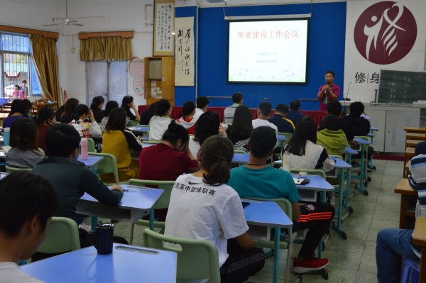 為人師表風(fēng)氣為重,教書育人德行為先。學(xué)校通過召開師德師風(fēng)建設(shè)工作會議,讓全體教師始終緊繃師德這根弦,在教育教學(xué)工作中以德立身、以德立學(xué)、以德施教、以德育德,全面落實立德樹人根本任務(wù)。