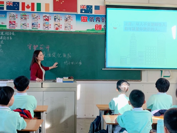 11月初,學(xué)校召開教師的預(yù)防未成年人被性侵害工作會(huì)。11月1日至11月12日,學(xué)校組織教師分批觀看關(guān)于未成年人教育電影《少年的你》。11月29日之前,各班分批開展“守護(hù)花開”防治性侵害未成年人犯罪的主題班會(huì)。主題班會(huì)圍繞“認(rèn)識(shí)我們的身體”、“分辨和防范性侵害”、“遇到性侵害時(shí)該怎么做”三個(gè)方面展開。會(huì)上,班主任通過模擬示范、游戲互動(dòng)、案例剖析等形式,告知孩子們何為性侵害,指導(dǎo)孩子如何辨別性侵害行為,了解身體的隱私部位,并告訴孩子隱私部位是不允許別人觸摸的,警醒孩子們要擦亮眼睛看清身邊人的行為,不要因?yàn)閷?duì)方是熟人就放松警惕;指導(dǎo)孩子們?cè)庥鲂郧址负笕绾巫宰o(hù)自救及尋求幫助,引導(dǎo)學(xué)生正確對(duì)待性侵害,樂觀勇敢的面對(duì)困難,熱愛生活,珍愛生命。