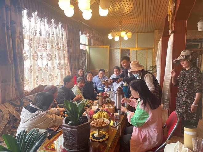 老師們的到來,傳遞了關(guān)心和溫暖,讓高原上的孩子和家長激動萬分。一位老奶奶,雖然不會說漢語,但會不間斷拿起暖壺為老師們添加甜茶,點頭微笑。交流中,家長們非常支持和認可學校的管理,競相表達對黨和國家教育援藏政策的感恩,對老師辛勤付出的感激,希望老師加強管理,助力自己的孩子早日成才。
