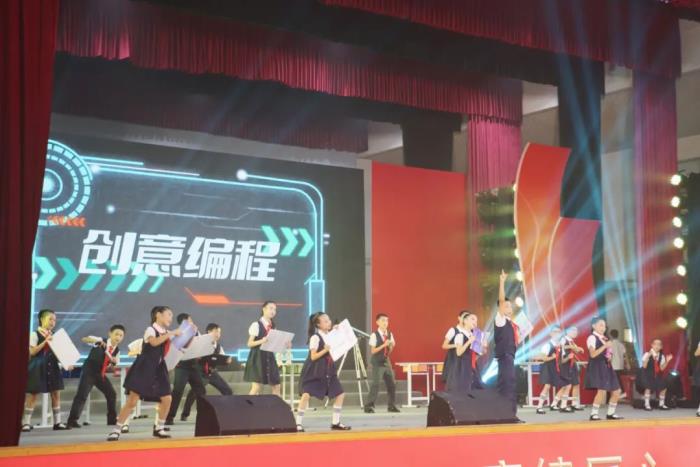 在獲嘉獎的同時,我校童夢劇團與科創(chuàng)團隊聯(lián)合打造《少年夢 科技夢 強國夢》節(jié)目在會上精彩呈現(xiàn)。節(jié)目展現(xiàn)了學??苿?chuàng)教育的蓬勃發(fā)展,編程、無人機、機器人、航模、航天、激光切割等等高科技項目入校園,孩子們在學習和創(chuàng)造中展示自己的科創(chuàng)夢想。通過無人機演繹中國名著《西游記》,學校童話劇和科創(chuàng)特色完美結(jié)合,節(jié)目精彩紛呈,受到好評!