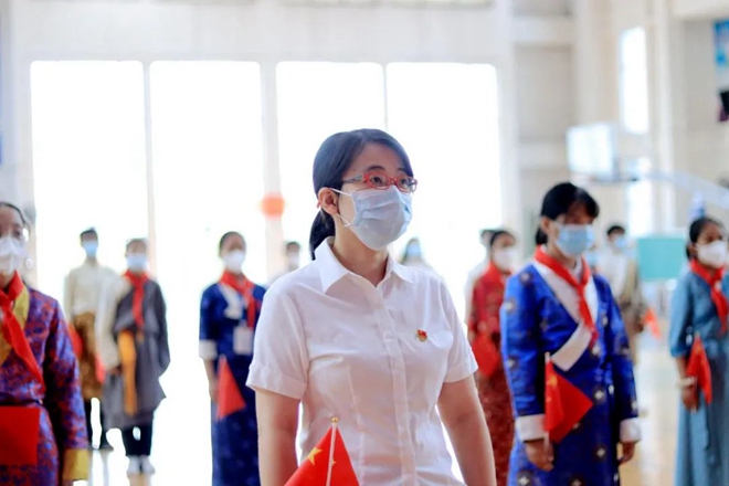 勒流街道黨工委委員江霞,勒流教育辦主任盧綺紅,教育辦黨建人事股股長甘永杰,江義中學(xué)黨總支書記、校長胡和秋,副書記周霞,副校長梁凱奇、段永輝、何善斌,以及西藏部主任鄭林莊等教師,與西藏班學(xué)生一起參加升旗儀式。因疫情仍然留在西藏等候返校的學(xué)生通過網(wǎng)絡(luò)直播參加線上升旗儀式。