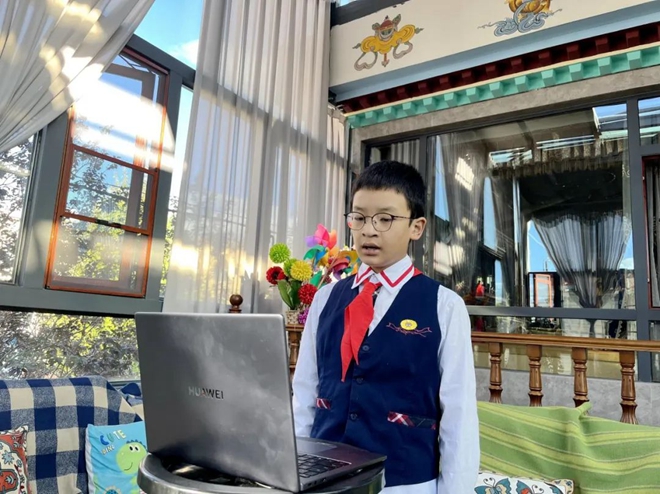 滯留西藏學(xué)生通過網(wǎng)絡(luò)直播參加線上升旗儀式