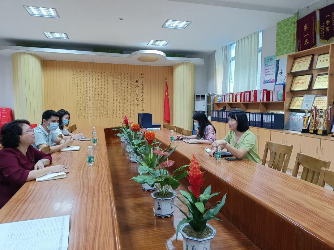 最后,大家移步會(huì)議室進(jìn)行座談。郭麗華校長從北海小學(xué)近幾年校園校貌的改變;“全童教育”品牌特色建設(shè);勞動(dòng)教育、粵劇、民族管弦樂、游泳、書香校園、魅力課堂等特色項(xiàng)目的傳承與打造;打造精品校本課程等方面作詳細(xì)匯報(bào),并提出學(xué)校教育教學(xué)工作方面的困惑以及需求。