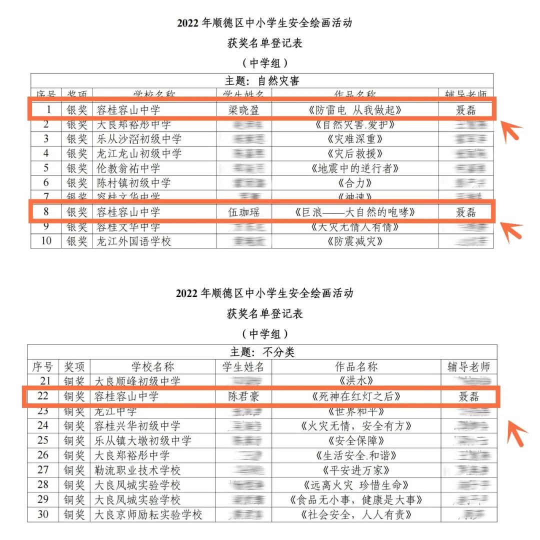近日,佛山市順德區(qū)應(yīng)急管理局、佛山市順德區(qū)教育局公布了2022年順德區(qū)中小學(xué)生安全繪畫活動(dòng)獲獎(jiǎng)名單,我校學(xué)子喜獲兩銀一銅的好成績。 今年6月是第21個(gè)全國“安全生產(chǎn)月”,主題是“遵守安全生產(chǎn)法,當(dāng)好第一責(zé)任”。為了在順德區(qū)中小學(xué)校營造濃厚的安全氛圍,增強(qiáng)中小學(xué)生安全意識(shí),弘揚(yáng)中華文化,區(qū)應(yīng)急管理局、區(qū)教育局于今年安全生產(chǎn)月期間在全區(qū)各中小學(xué)校開展了“2022 年順德區(qū)中小學(xué)生安全繪畫”活動(dòng),我校美術(shù)老師聶磊組織學(xué)生積極響應(yīng)和參與,經(jīng)過師生們的共同努力,經(jīng)過全區(qū)多名參賽者角逐,我校學(xué)生作品脫穎而出,喜獲優(yōu)異成績。