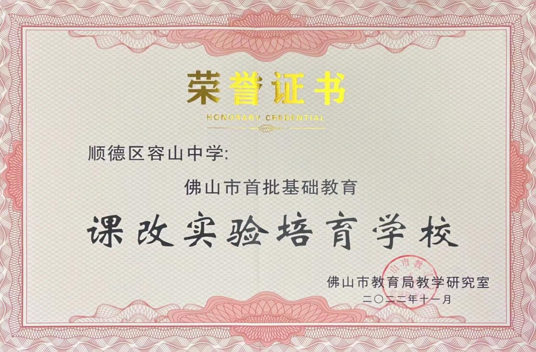 為深化新時期課程教學(xué)改革,落實立德樹人根本任務(wù),根據(jù)《佛山市教育發(fā)展“十四五”規(guī)劃》精神,積極推進(jìn)“一三六九”工程”,深化基礎(chǔ)教育課程教學(xué)改革,全力打造佛山“五好教育”新形態(tài),推進(jìn)“佛山市首批基礎(chǔ)教育課改實驗項目校”的落實。根據(jù)《關(guān)于遴選認(rèn)定佛山市首批基礎(chǔ)教育課改實驗項目校的通知》,經(jīng)學(xué)校自主申報、市教研室組織專家遴選,認(rèn)定首批項目培育學(xué)校。容山中學(xué)被認(rèn)定為佛山市首批基礎(chǔ)教育課改培育學(xué)校!