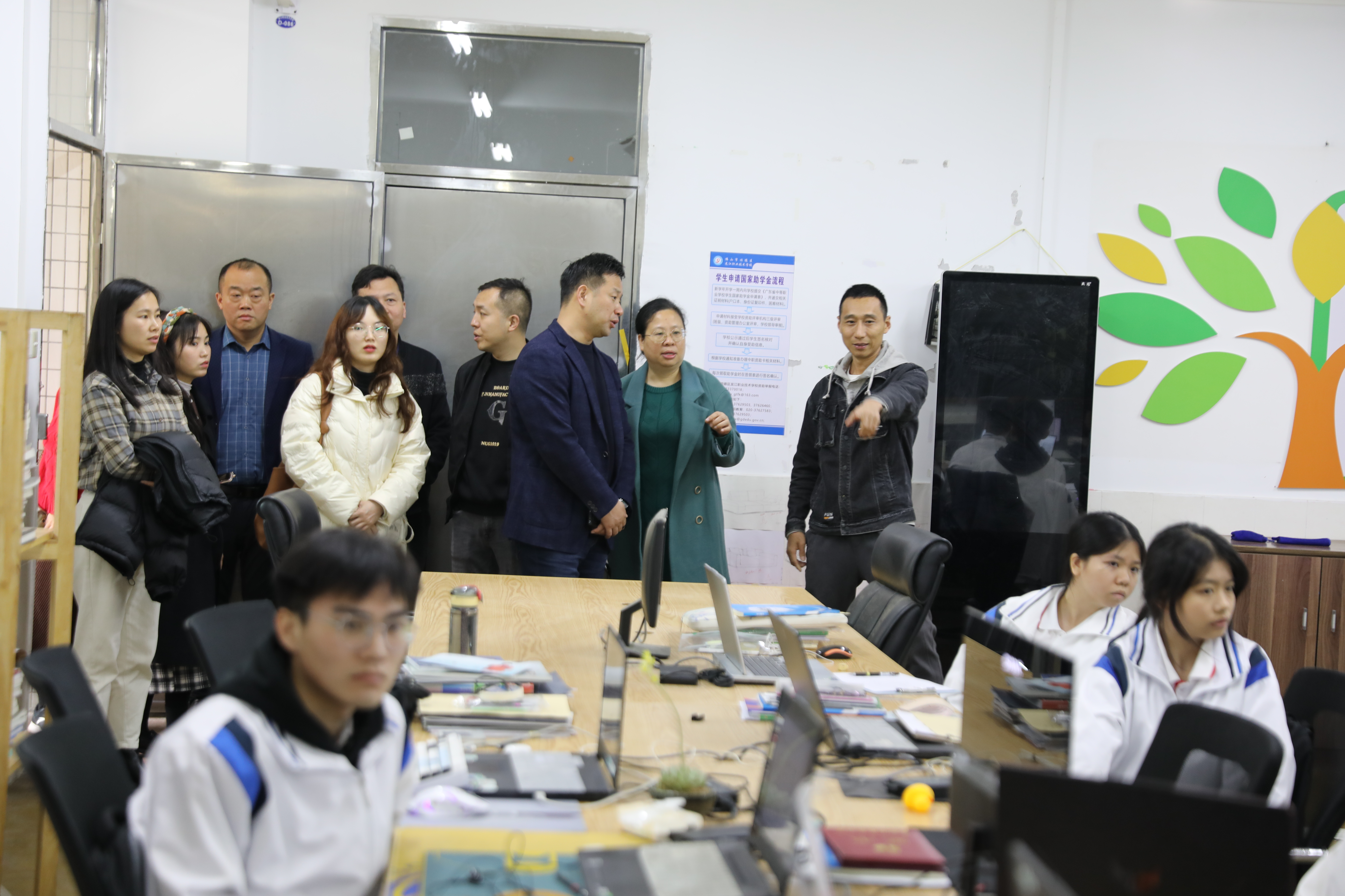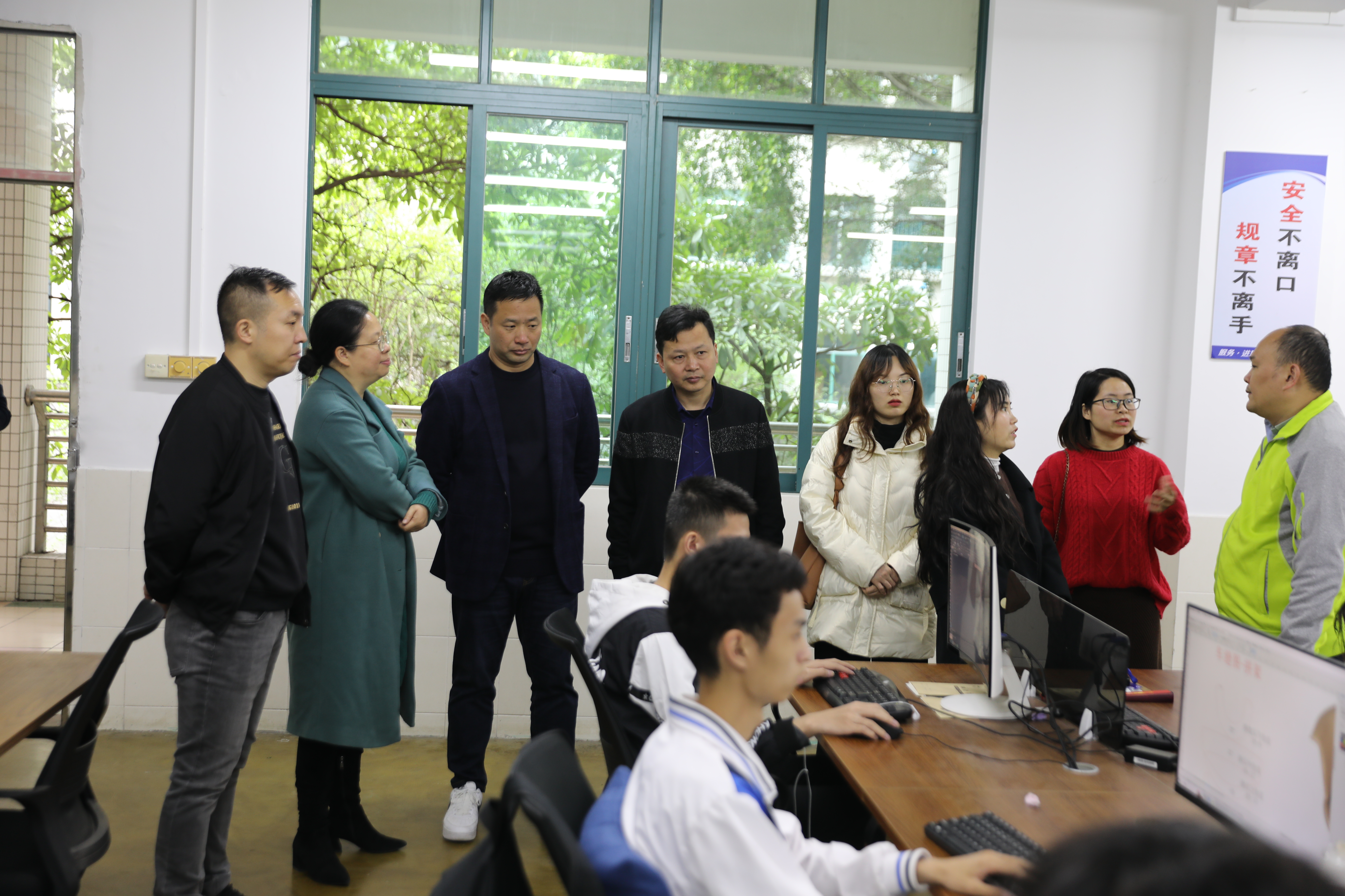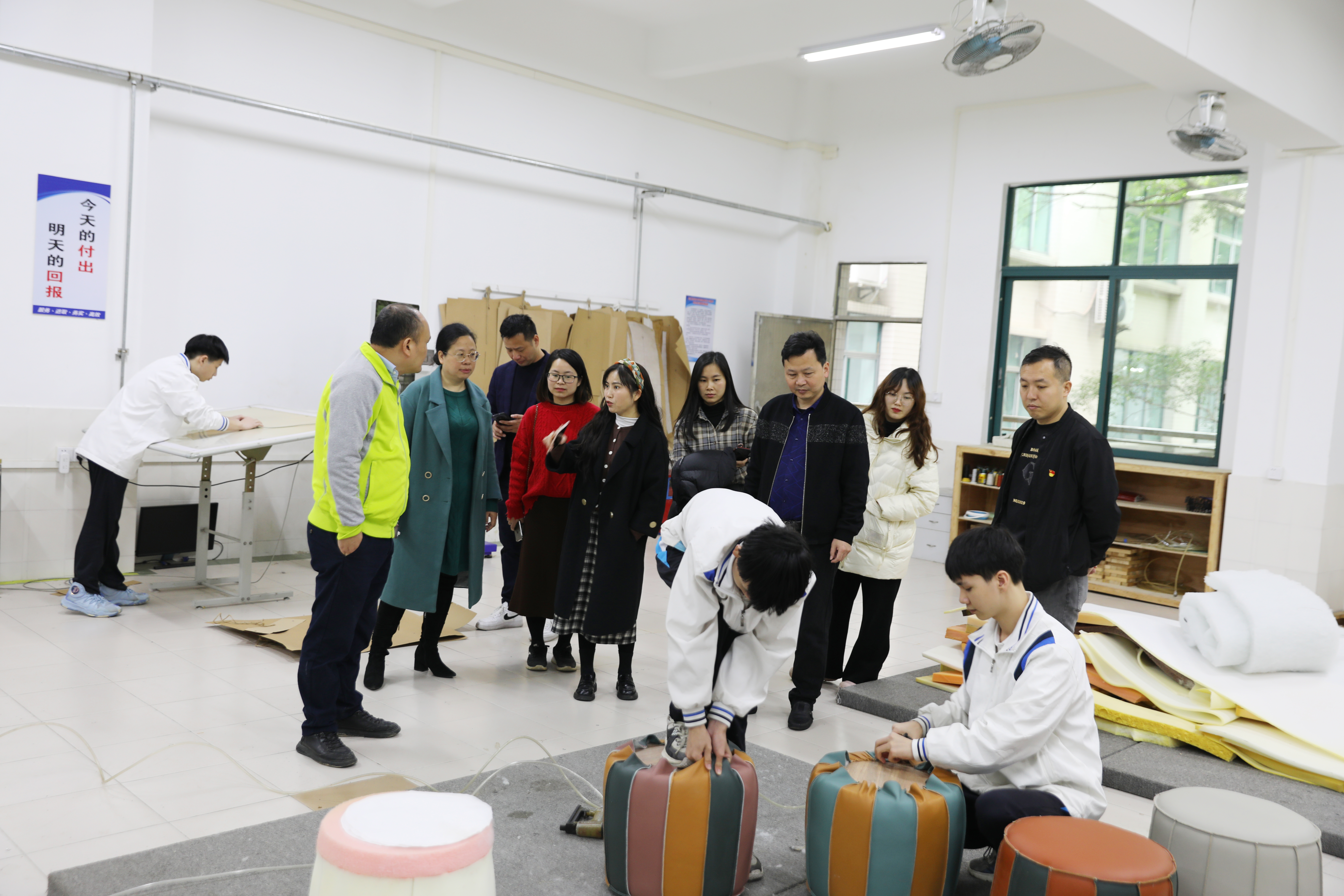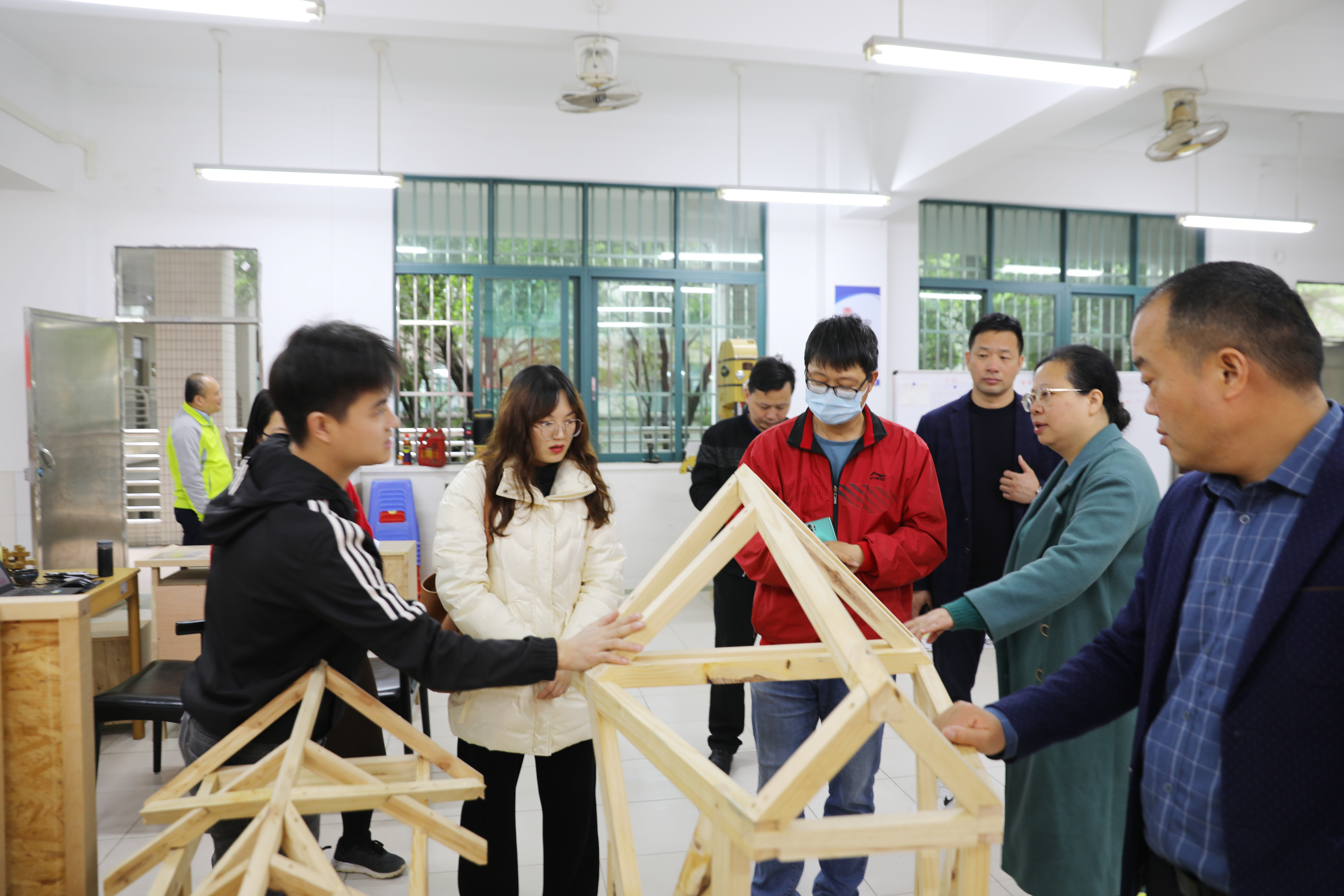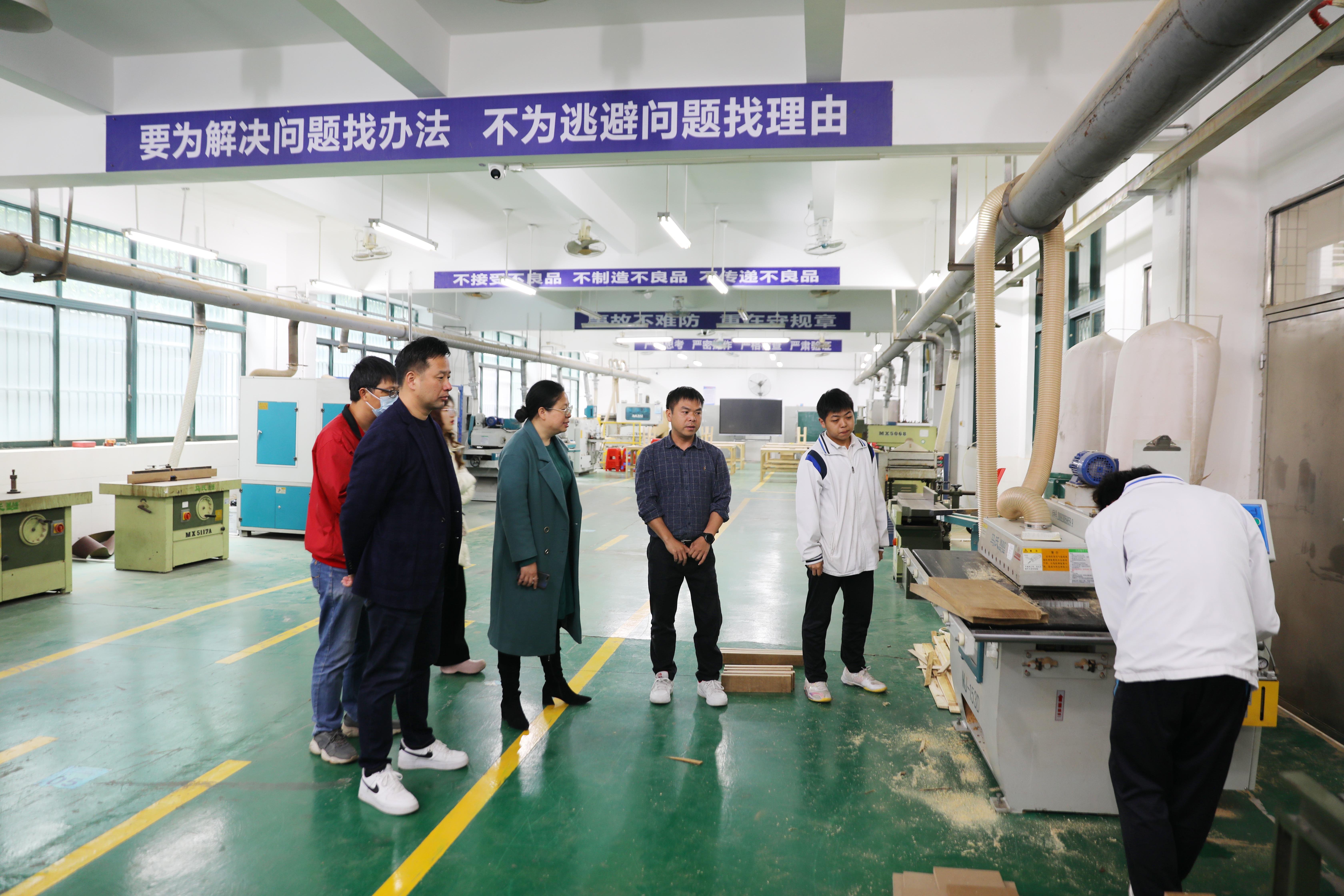 翁源職校副校長(zhǎng)鐘敏敏、吳海華一行依次參觀了我校辦公區(qū)、龍職傳媒中心、楊伊純名班主任工作室、家具創(chuàng)意班、3D打印備賽室、軟體家具實(shí)訓(xùn)室、世界木工大賽實(shí)訓(xùn)室等場(chǎng)室。來(lái)賓不時(shí)與我校專業(yè)教師探討教學(xué)管理問(wèn)題,還對(duì)龍職綠色校園的自然環(huán)境和完善的場(chǎng)室設(shè)置給予了較高的評(píng)價(jià)。特別是在各實(shí)訓(xùn)場(chǎng)室,來(lái)賓們興致盎然,大家駐足傾聽(tīng)?zhēng)熒v解,細(xì)察同學(xué)的實(shí)訓(xùn),稱贊不已。