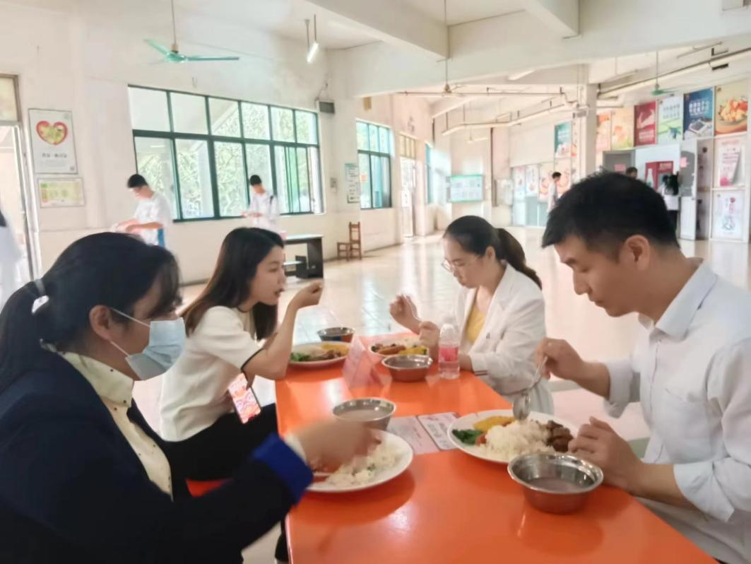 隨后,家長代表來到學(xué)生食堂,在品嘗學(xué)生的營養(yǎng)午餐中了解學(xué)生伙食情況。各位家長對學(xué)生的飯餐數(shù)量及質(zhì)量表示滿意。