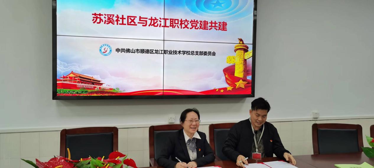 為切實(shí)發(fā)揮黨建引領(lǐng),凝聚共建合力,推動(dòng)黨建“融入村居發(fā)展、融入學(xué)校提升、融入校企共建”,2023年4月7日,龍江職業(yè)技術(shù)學(xué)校第二黨支部與蘇溪社區(qū)黨支部在我校舉行黨建共建結(jié)對(duì)暨簽約儀式。
