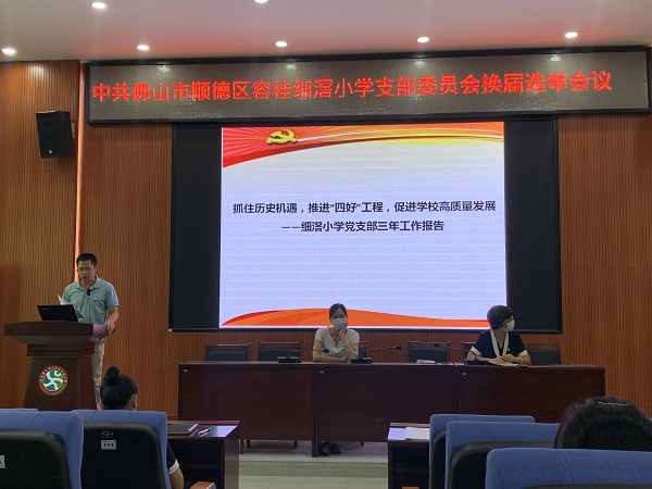 大會(huì)第二項(xiàng),組織委員姚梓琪同志宣讀《中國(guó)共產(chǎn)黨容桂細(xì)滘小學(xué)黨支部新一屆委員會(huì)換屆選舉辦法》