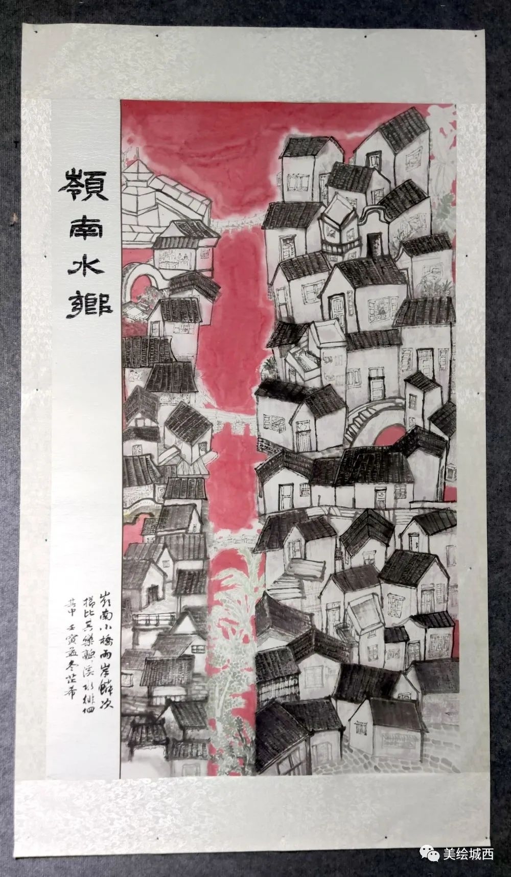此次水鄉(xiāng)畫作品展共展出容桂城西小學少兒水鄉(xiāng)畫學員作品作品五十余幅,一幅幅稚嫩又不失氣韻的書畫作品,意境深遠?;驌]毫潑墨、筆走龍蛇,或施朱調(diào)丹、妙手著春,展示了孩子們蓬勃的朝氣和豐富的創(chuàng)造力,充分表達了該校師生喜迎新年、憧憬美好未來的熱切心情,展現(xiàn)了城西小學基地學校傳承水鄉(xiāng)文化、提高藝術修養(yǎng)的豐碩成果。