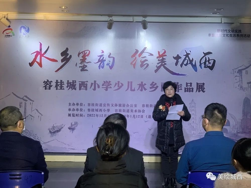 隨后是廣東省美術家協(xié)會理事,廣東省中國畫學會理事,粵港澳大灣區(qū)美術聯(lián)盟理事,佛山市美術家協(xié)會副主席陳玉蓮女仕發(fā)言。容桂是嶺南水鄉(xiāng)畫派的發(fā)源地,素有全國書畫之鄉(xiāng)的美譽,城西小學為了傳承本土文化,從2003年就成立了少兒水鄉(xiāng)畫培訓基地,傳承有序,堅持發(fā)展,教學成果顯著,培養(yǎng)了一批批的書畫人才,少兒水鄉(xiāng)畫教育已成為學校教育的特色,希望城西小繼續(xù)發(fā)展“耕者”精神,播下更多藝術的種子。