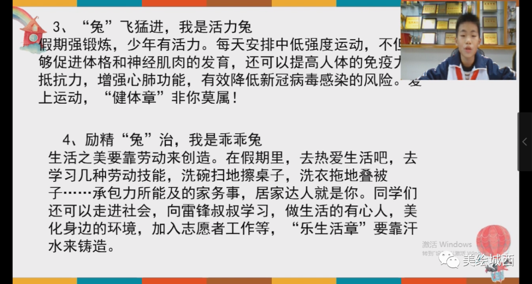 寒冬料峭期末至,碩果滿懷假期來。為了給這個(gè)特殊而又充實(shí)的學(xué)期畫上圓滿的句號(hào),2023年1月5日晚上7點(diǎn)30分,城西小學(xué)舉行了2022學(xué)年度第一學(xué)期線上散學(xué)典禮。本次散學(xué)典禮分為三個(gè)環(huán)節(jié):一、安全教育;二、學(xué)生代表發(fā)言;三、學(xué)校領(lǐng)導(dǎo)致辭。學(xué)校全體教師以及學(xué)生、學(xué)生家長(zhǎng)參加了此次線上散學(xué)典禮。