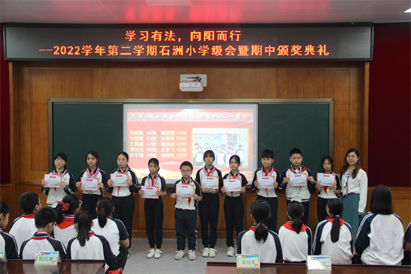 榜樣凝聚力量,信念鼓舞前行。為了更好開展小組合作,激發(fā)學(xué)生學(xué)習(xí)興趣及小組合作學(xué)習(xí)的積極性,做到互助互學(xué),共同進取。4月27-28日,石洲小學(xué)開展級會暨頒獎典禮,級會由級長黎渭興老師、馮梓華老師主持,頒獎典禮分別由馮惠華老師、馮鏡標老師、黃翠興老師和黃靜雯老師主持,學(xué)校行政團隊、各年級師生出席本次頒獎典禮。