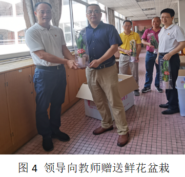 接著在學校會議室中向教師代表送上了鮮花,并去到教師辦公室為教師們贈上蝴蝶蘭和節(jié)日慰問品,向學校全體教師致以最誠摯的節(jié)日祝福。蘇健功主席希望全體教師要在平凡的崗位上,積極有為,求實創(chuàng)新,繼續(xù)鼓足干勁、立德樹人、做好表率,培養(yǎng)更多優(yōu)秀人才。