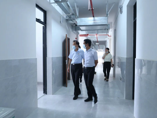 李廣慶一行查看了學(xué)校新宿舍樓、防疫物資儲(chǔ)備室、飯?zhí)靡约跋涝O(shè)施設(shè)備等,詳細(xì)了解師生返順、疫情防控、物資儲(chǔ)備、衛(wèi)生管理、食品安全等相關(guān)情況。