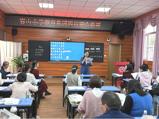 出席本次活動的嘉賓及領(lǐng)導(dǎo)有:謝能桂校長、劉厚明校長、郭玲副校長、余智華主任、 陳小燕主任、王杰銘主任、陳笑盈中心教研組長,以及容山小學(xué)教育集團全體語文老師。
