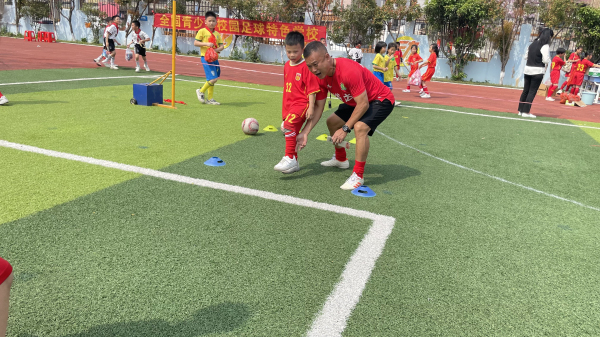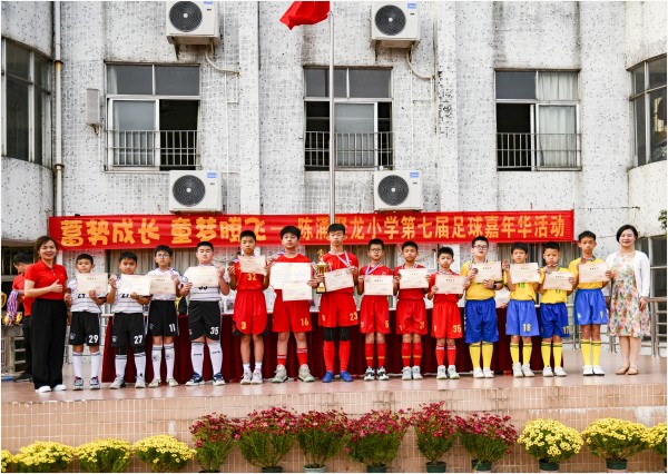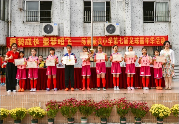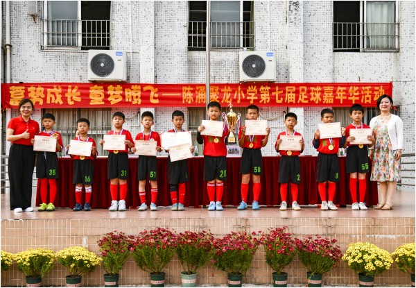 我校一直以足球作為學校特色,把足球運動的開展作為學校素質(zhì)教育的又一個突破口,并取得了不錯的成績,在剛剛結(jié)束的2023年龍江鎮(zhèn)校園足球聯(lián)賽中,我校足球隊獲得了男子丁組和女子丁組冠軍以及男子丙組季軍,鄒校長為獲獎的學生頒獎。我校是全國青少年校園足球特色學校,短短幾年,學校足球經(jīng)歷了從無到有、從初步探索到強勢發(fā)展的變化歷程。如今,校園足球已成為聚龍學子深愛的體育特色項目。