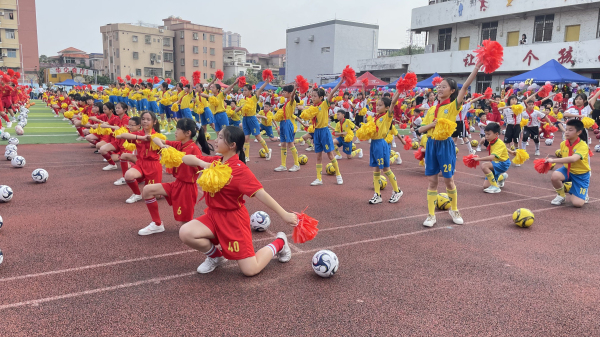 嘉年華活動在班級團體操表演中拉開序幕,朝氣蓬勃的節(jié)目輪番上演。孩子們稚氣未脫的臉上,洋溢的是自信的笑容。緊接著,學校足球操、啦啦操的展示得到了各級領(lǐng)導的高度評價,他們整齊劃一的精彩表演贏得了在場嘉賓們的喝彩與稱贊。隨后,鄒校長發(fā)表講話,宣布陳涌聚龍小學第七屆足球嘉年華活動正式開幕。