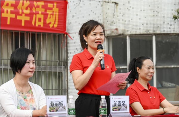 鄒雪琴校長發(fā)表講話并宣布陳涌聚龍小學第七屆足球嘉年華活動正式開幕