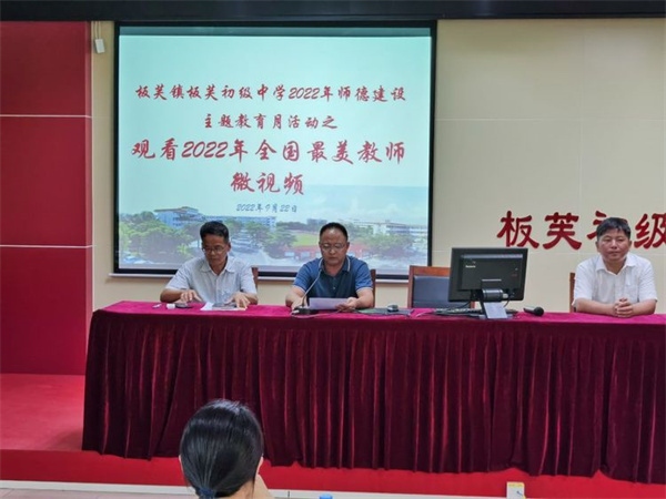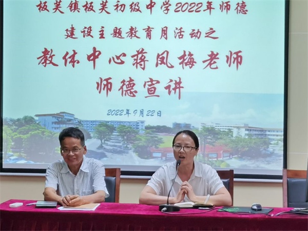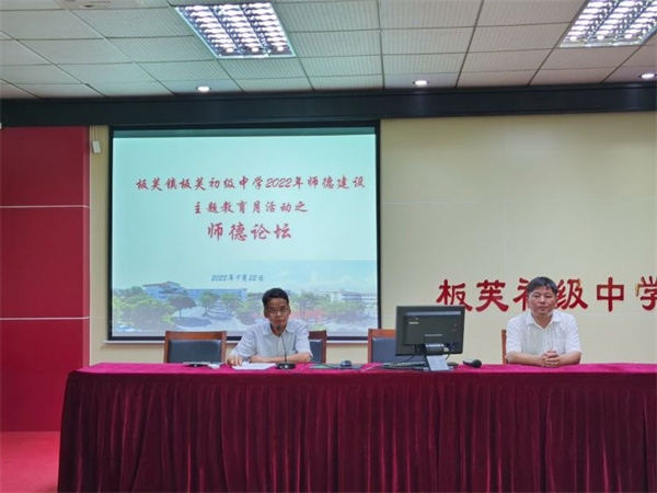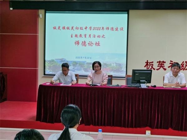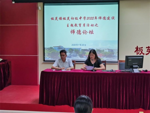 9月22日下午,板芙中學(xué)在學(xué)校弘毅樓階梯室組織舉辦了2022年師德建設(shè)主題教育月系列活動之師德論壇。該校全體行政和教師參加活動。此次活動還邀請到板芙鎮(zhèn)教體中心蔣鳳梅老師作個人師德先進(jìn)事跡宣講,活動由板芙中學(xué)副校長楊加權(quán)主持。