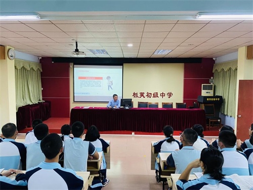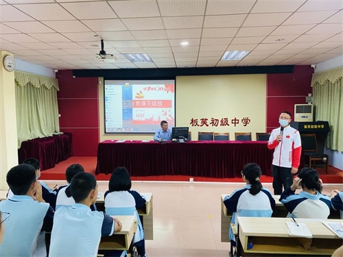 為充分發(fā)揮團(tuán)組織教育青少年的功能,進(jìn)一步加大對團(tuán)員青年、入團(tuán)積極分子的培養(yǎng)教育力度,實(shí)現(xiàn)以“黨建帶團(tuán)建”的目標(biāo),4月11日,板芙初級中學(xué)在弘毅樓一樓階梯室舉行“黨支部書記上團(tuán)課”活動。該校黨支部書記、校長吳勇明以《永遠(yuǎn)跟黨走,建功新時代》為題講授團(tuán)課?;顒佑稍撔F(tuán)委書記梁博煜老師主持,各班團(tuán)員代表、入團(tuán)積極分子共70多位同學(xué)參加。