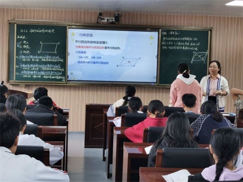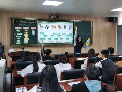 翌日,開展現(xiàn)場送課交流活動。板芙初級中學(xué)的3名骨干教師分別為湯溪學(xué)校的學(xué)子送上了3節(jié)展示課。英語骨干教師鐘媚展示的是《Why do you like pandas?》。她通過創(chuàng)設(shè)動物園情景,將零散的教學(xué)活動統(tǒng)一在“設(shè)計動物園參觀路線并說明原因”的大任務(wù)中,借助生動形象的圖片、契合主題的動畫和相關(guān)動物的聲音,幫助學(xué)生學(xué)習(xí)動物名詞和形容詞,突破難詞發(fā)音、名詞單復(fù)和形容詞感情色彩。整個教學(xué)過程,師生互動,很好地完成了教學(xué)目標(biāo)。數(shù)學(xué)科組長向光榮老師帶來一節(jié)八年級《平行四邊形的判定》,她帶領(lǐng)同學(xué)們在具體圖形中落實判定的應(yīng)用以及數(shù)學(xué)幾何語言的表達,深入淺出,通過學(xué)生自主探究活動,充分地把課堂交給了學(xué)生,發(fā)揮了學(xué)生的主體作用。