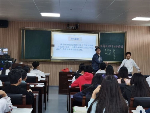 語文科組長鄭超明老師帶來一節(jié)寫作指導(dǎo)課——《破解把人物寫活的密碼》。鄭老師以新課標(biāo)的教育理念,新穎獨特的教學(xué)設(shè)計,從導(dǎo)入教學(xué)到開展練筆層次分明、水到渠成,讓在座的師生們無不感到如沐春風(fēng)。教學(xué)中,他運用周星馳的精彩影視片段,讓學(xué)生在片段賞析中習(xí)得“以形寫神、典型細節(jié)”等多種表現(xiàn)人物特點的方法;通過即興表演以及創(chuàng)設(shè)生動情境,讓學(xué)生進行課堂小練筆,還課堂于學(xué)生,充分發(fā)揮學(xué)生的自主能動性,讓寫作課不再成為老師的“一言堂”。