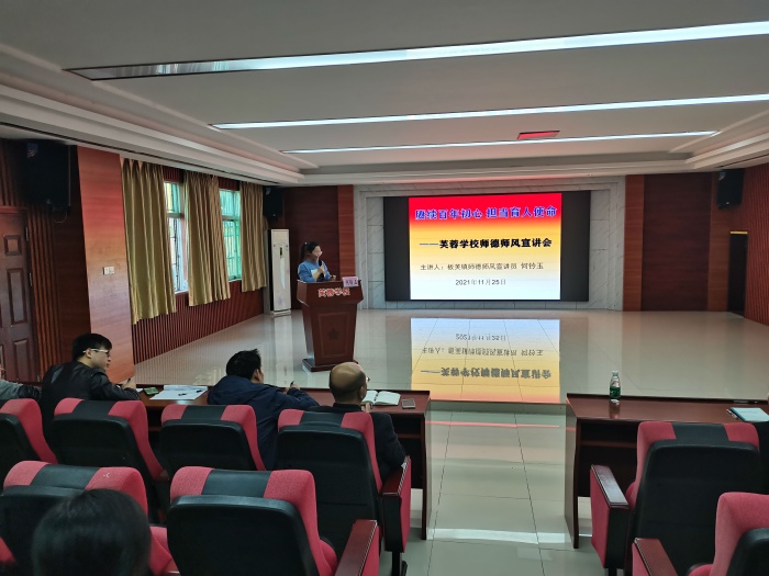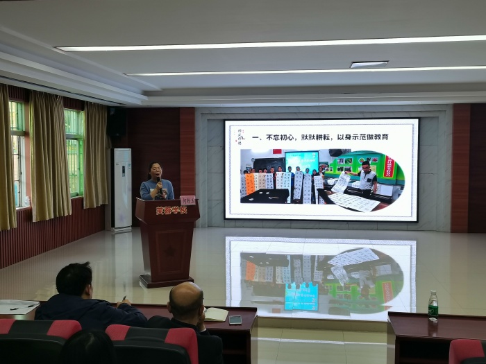 11月25日下午,芙蓉學校全體教師以熱烈的掌聲歡迎何鈴玉老師登臺演講。何鈴玉老師是板芙鎮(zhèn)深灣小學一名老師,也是板芙鎮(zhèn)師德師風宣講員。