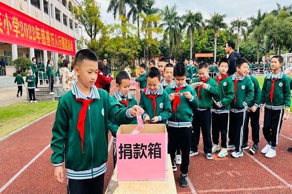 學(xué)校舉行了開學(xué)升旗儀式。首先由吳肇葵校長致辭,他希望同學(xué)們都能在新的一學(xué)期超越自我,以一種積極進取、勇爭上游的精神,永不停歇、百折不撓的心態(tài)去面對新的挑戰(zhàn)的寄語。全校師生一起唱跳《一起向未來》手勢舞,營造新學(xué)期一切向未來的美好氣氛。升旗儀式過后,板芙小學(xué)開展響應(yīng)第35屆“中山市慈善萬人行”活動募捐號召,積極倡導(dǎo)師生弘揚一如既往的樂于助人的好傳統(tǒng),全校師生自發(fā)自愿捐款,奉獻出自己一份力量,伸出仁愛之手,宣揚這份大愛精神。