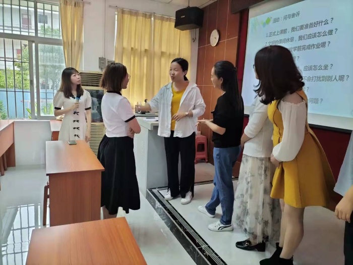 期間,吳丹婷老師請(qǐng)現(xiàn)場(chǎng)一位老師扮演孩子,真切體驗(yàn)了一次被“鼓勵(lì)”與被“表?yè)P(yáng)”。通過(guò)情景模擬,對(duì)孩子說(shuō)傷害的話(huà)語(yǔ)和鼓勵(lì)的話(huà)語(yǔ),讓模擬孩子的老師說(shuō)說(shuō)自己的感受和想法,從而使老師們更加了解孩子的內(nèi)心世界,也明白今后在教學(xué)中運(yùn)用哪種方法更有效。