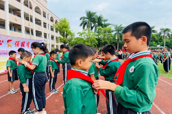 為迎接中山市第八次少代會(huì)的召開(kāi),增強(qiáng)少先隊(duì)員的光榮感,充分發(fā)揮少先隊(duì)組織在立德樹(shù)人中的先鋒作用。10月12日上午升旗儀式,板芙鎮(zhèn)板芙小學(xué)舉行了“請(qǐng)黨放心,強(qiáng)國(guó)有我”--少先隊(duì)微儀式暨2021學(xué)年“紅領(lǐng)巾獎(jiǎng)?wù)隆睜?zhēng)章啟動(dòng)儀式。