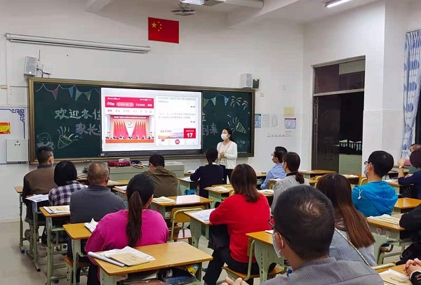 各班家長會(huì)上,班主任和家長們一起學(xué)習(xí)了家庭教育、安全教育、“學(xué)習(xí)強(qiáng)國”平臺(tái)、“雙減”政策等內(nèi)容。在“學(xué)習(xí)強(qiáng)國”交流分享環(huán)節(jié),老師和家長代表分享了自己的學(xué)習(xí)經(jīng)驗(yàn),有的精心準(zhǔn)備了課件講解,有的開展答題比賽,有的現(xiàn)場指導(dǎo),看視頻、聽新聞、學(xué)理論,讓“學(xué)習(xí)強(qiáng)國”更接地氣、更有活力、更有溫度,深入人心。