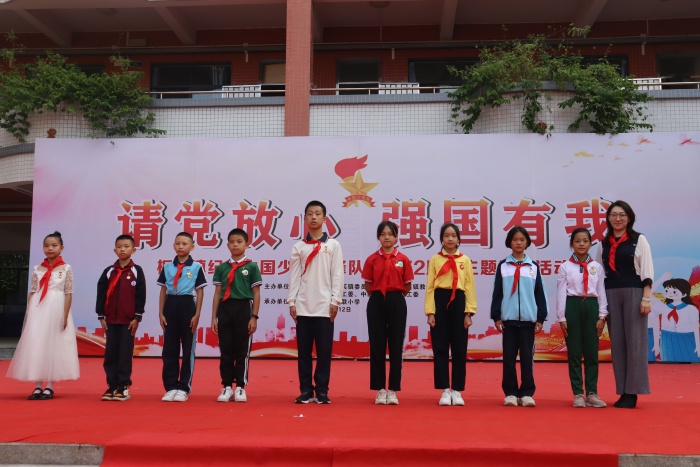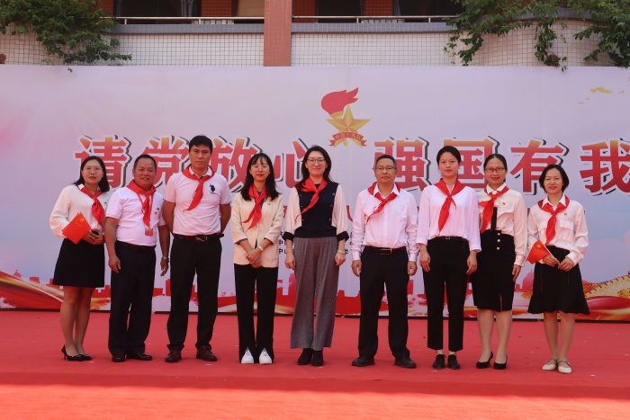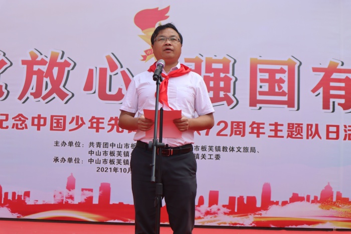 本次活動(dòng)以“請(qǐng)黨放心 強(qiáng)國(guó)有我”為主題,由板芙鎮(zhèn)團(tuán)委、板芙鎮(zhèn)教體文旅局、鎮(zhèn)少工委、鎮(zhèn)關(guān)工委主辦。板芙鎮(zhèn)黨委副書記張偉鵬,團(tuán)市委學(xué)校部部長(zhǎng)李昀蔚,副鎮(zhèn)長(zhǎng)候選人肖嘉露,教體文旅局局長(zhǎng)盧金軻,鎮(zhèn)團(tuán)委書記、少工委主任許瑞芳,關(guān)工委副主任梁炳軒,關(guān)工委委員黃北勝,教育和體育事務(wù)中心魏先海,新聯(lián)小學(xué)黨支部書記、少工委主任鄭少君,鎮(zhèn)團(tuán)委副書記、少先隊(duì)總輔導(dǎo)員李小敏,板芙鎮(zhèn)各兄弟學(xué)校的大隊(duì)輔導(dǎo)員們、各校獲獎(jiǎng)的中隊(duì)輔導(dǎo)員代表、少先隊(duì)員代表及新聯(lián)小學(xué)全體師生參加活動(dòng)。