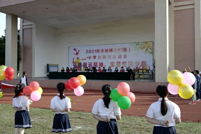 為全面貫徹落實《中共中央國務院關于加強青少年體育增強青少年體質(zhì)的意見》精神,積極踐行五育并舉的教育方針,11月10日,中山市大涌鎮(zhèn)第41屆小學生田徑運動會開幕式在旗北小學田徑場舉行。大涌鎮(zhèn)黨委委員郭艷艷同志、大涌鎮(zhèn)教體文旅局局長李亮同志、大涌鎮(zhèn)關工委常務副主任李錦卿同志、大涌鎮(zhèn)教育和體育事務中心副主任黃麗霞同志,以及各村、社區(qū)代表、學校領導出席了開幕式。