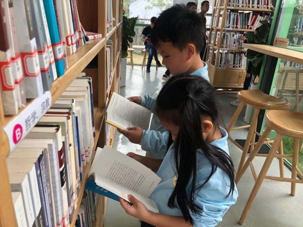 遠(yuǎn)處,一座鮮綠色框架的玻璃屋靜立在金黃的稻田旁,那就是左步書屋。同學(xué)們在這里開展了一次親子閱讀會。書架前那一個個選書的小身影,窗臺前那一雙雙專注的小眼神,成了最溫馨的畫面。那或抱或靠的輕聲誦讀,那或坐或站的捧書共品,都是一道道親子共讀的美麗風(fēng)景。