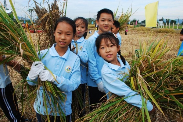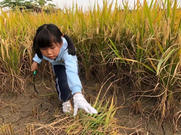 清晨,嵐田小學(xué)全體教師和部分親子家庭帶著歡聲笑語,踏著輕快的腳步,走進(jìn)南朗鎮(zhèn)左步村,空氣中彌漫著稻谷的清香和泥土的芬芳,讓人心曠神怡。穿過村莊,一片金黃的稻田呈現(xiàn)在眼前,同學(xué)們不約而同地連聲贊嘆:“好美??!” 在家長們的帶領(lǐng)下,同學(xué)們拿著鐮刀走進(jìn)稻谷叢中。認(rèn)真聆聽了農(nóng)民伯伯介紹割稻谷的方法后,同學(xué)們從容地與稻子“切磋”起來,左手抓住一把稻桿,右手用鐮刀在稻桿根部來回切割,切身體會到了“粒粒皆辛苦”。不少同學(xué)還嘗試了用打谷機(jī)打稻谷,在田間忙得不亦樂乎,喜氣洋洋的秋收畫面真是美不勝收。
