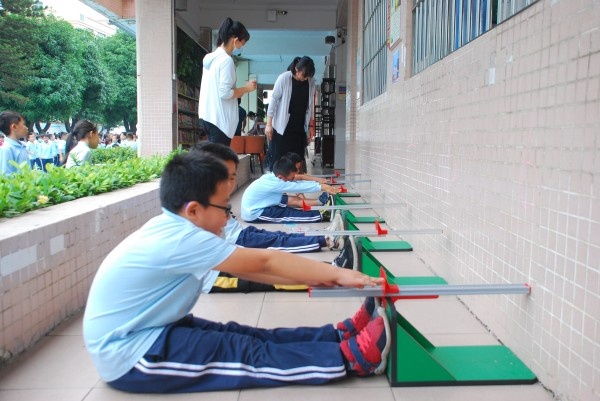 榮譽室前,肺活量測試正在進行?!胺潘?,深呼吸,吐氣!”在裁判老師的鼓勵下,同學們都在肺活量測試中取得了令自己滿意的成績!