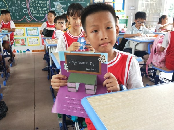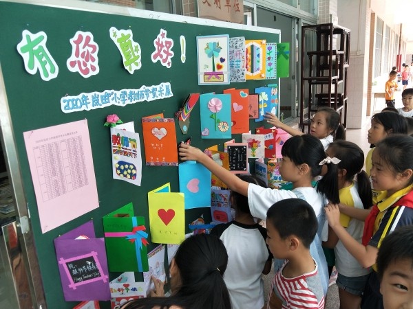 榮譽(yù)室門前,同學(xué)們精心制作的“賀卡墻”為教師節(jié)增添了色彩。一張張五彩斑斕的賀卡,一幅幅生動(dòng)逼真的圖案,一句句想對(duì)老師說的心理話,充分發(fā)揮了兒童的奇妙想象,展現(xiàn)了孩子們對(duì)老師崇高的敬意,一筆一畫,將真誠的情誼全部融進(jìn)了小小的卡片里。