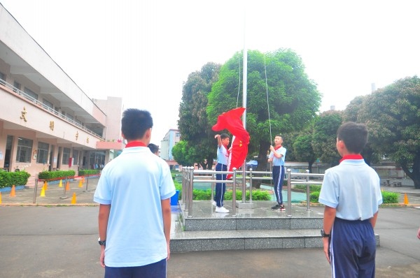 久違的入場(chǎng)曲響起,同學(xué)們保持安全距離排好隊(duì)伍,來(lái)到操場(chǎng)參加復(fù)學(xué)后第一個(gè)升旗儀式。隨著一聲“升旗儀式現(xiàn)在開(kāi)始”的口令,同學(xué)們一個(gè)個(gè)站得筆直,齊刷刷地舉起右手,向著冉冉升起的五星紅旗獻(xiàn)上莊嚴(yán)的少先隊(duì)禮,唱起洪亮的國(guó)歌,向鮮艷的國(guó)旗敬禮,向偉大的祖國(guó)致敬! 緊接著,李嬌艷校長(zhǎng)發(fā)表了熱情洋溢的國(guó)旗下寄語(yǔ),表?yè)P(yáng)了同學(xué)們?cè)趦蓚€(gè)多月的線上學(xué)習(xí)期間認(rèn)真學(xué)習(xí)、自律自強(qiáng),勉勵(lì)大家返校后要心懷夢(mèng)想、不懈努力,始終“向上”“向善”“悅?cè)恕薄皭偧骸薄?/p>