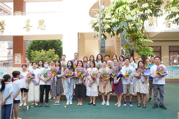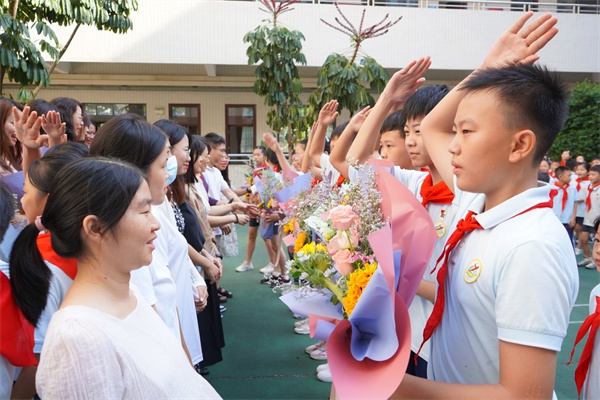 音樂響起,六年級學(xué)生代表為老師們獻(xiàn)上鮮花,致以節(jié)日的問候。一束束鮮花與一句句真誠的感謝表達(dá)了孩子們對所有辛勤耕耘的老師們最崇高的敬意。