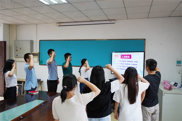 鮮紅的黨旗下,領(lǐng)誓人李嬌艷書記帶領(lǐng)著黨員同志們一起高舉右手,莊嚴宣誓:“我志愿加入中國共產(chǎn)黨……隨時準備為黨和人民犧牲一切,永不叛黨?!辩H鏘恢宏的誓詞,擲地有聲的誓言,強烈震撼著在場的每一位黨員。一字一句,神圣而豪邁,表達了對中國共產(chǎn)黨的無限忠誠。