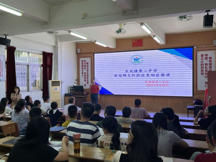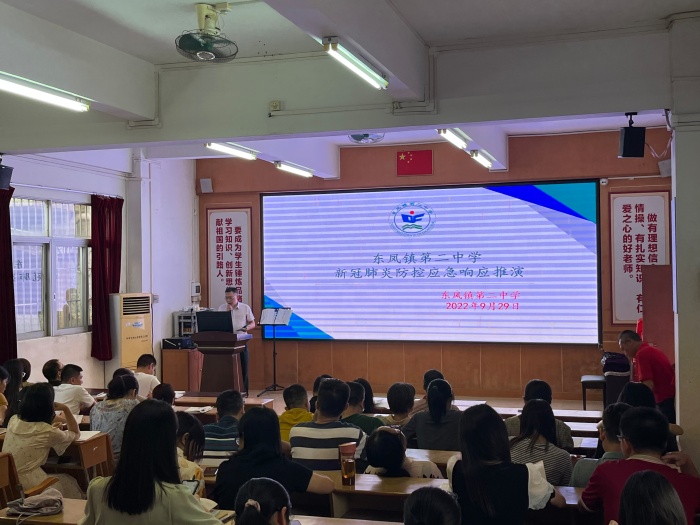 為了做好國慶放假前安全教育,貫徹落實(shí)上級(jí)部門關(guān)于國慶節(jié)假期期間的疫情防控工作部署,做到科學(xué)防控,守護(hù)校園安全防線,9月29日下午,中山市東鳳鎮(zhèn)第二中學(xué)在學(xué)校階梯室開展了節(jié)前新冠肺炎疫情師生應(yīng)急響應(yīng)處置演練活動(dòng)。全體教職員工參會(huì),學(xué)校衛(wèi)生健康副校長梁景榮進(jìn)行防疫安全主題培訓(xùn)。