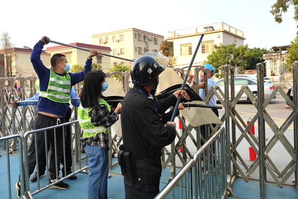 演練前,德育處歐見(jiàn)標(biāo)主任對(duì)防暴安全演練做好部署,對(duì)安保人員和應(yīng)急小單元成員宣講了反恐防暴知識(shí),并現(xiàn)場(chǎng)演示鋼叉、盾牌等常用器械的使用方法。提醒注意事項(xiàng),落實(shí)流程細(xì)節(jié),以確保演練活動(dòng)順利開(kāi)展。